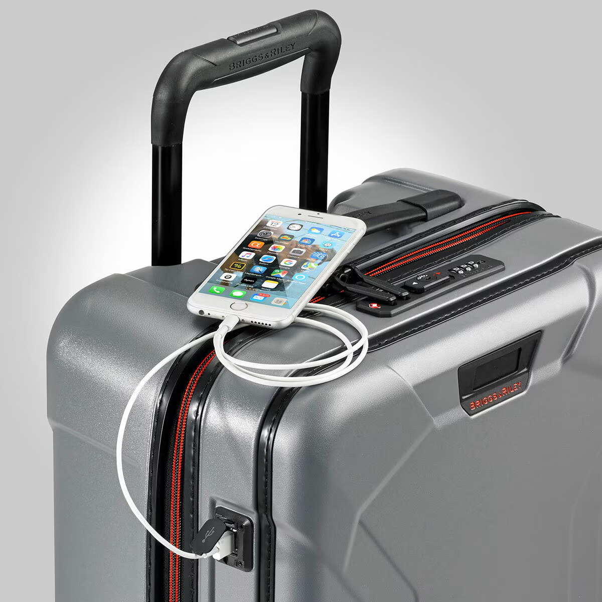We’ve engineered our patented Torq International 53cm Carry-On Spinner as the best four-wheeled suitcase for global travellers. The compact design fits flawlessly in most international airline bins, and the lightweight polycarbonate shell guarantees years of performance without weighing you down. Tech-toting travellers will love the easy access to electronics with the patented hinged front pocket, and the padded tech pockets and external USB charging port keep your most important devices protected and fully charged.