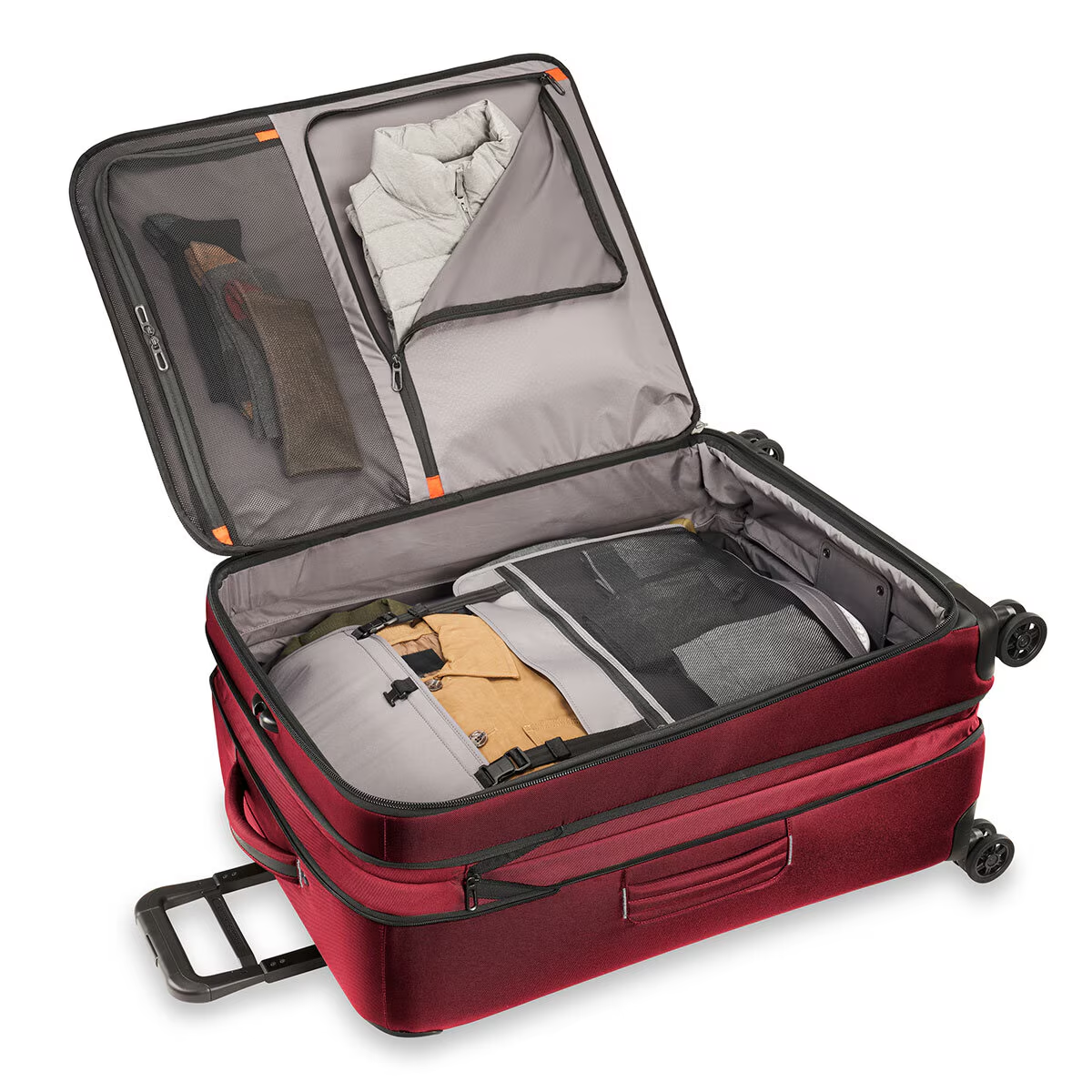 Experience the best of everything with the ZDX Large Expandable Spinner, a sporty spinner suitcase that sets a new bar for expandable luggage with up to 6cm of zip-open expansion depth. The exterior-mounted Outsider® handle creates a flat packing surface to keep garments impeccably crisp, while cinch-down garment panels and multiple front pockets deliver near-unlimited options for organising travel essentials. Naturally, it’s all made for lifetime endurance with the unrivalled quality of Briggs & Riley.