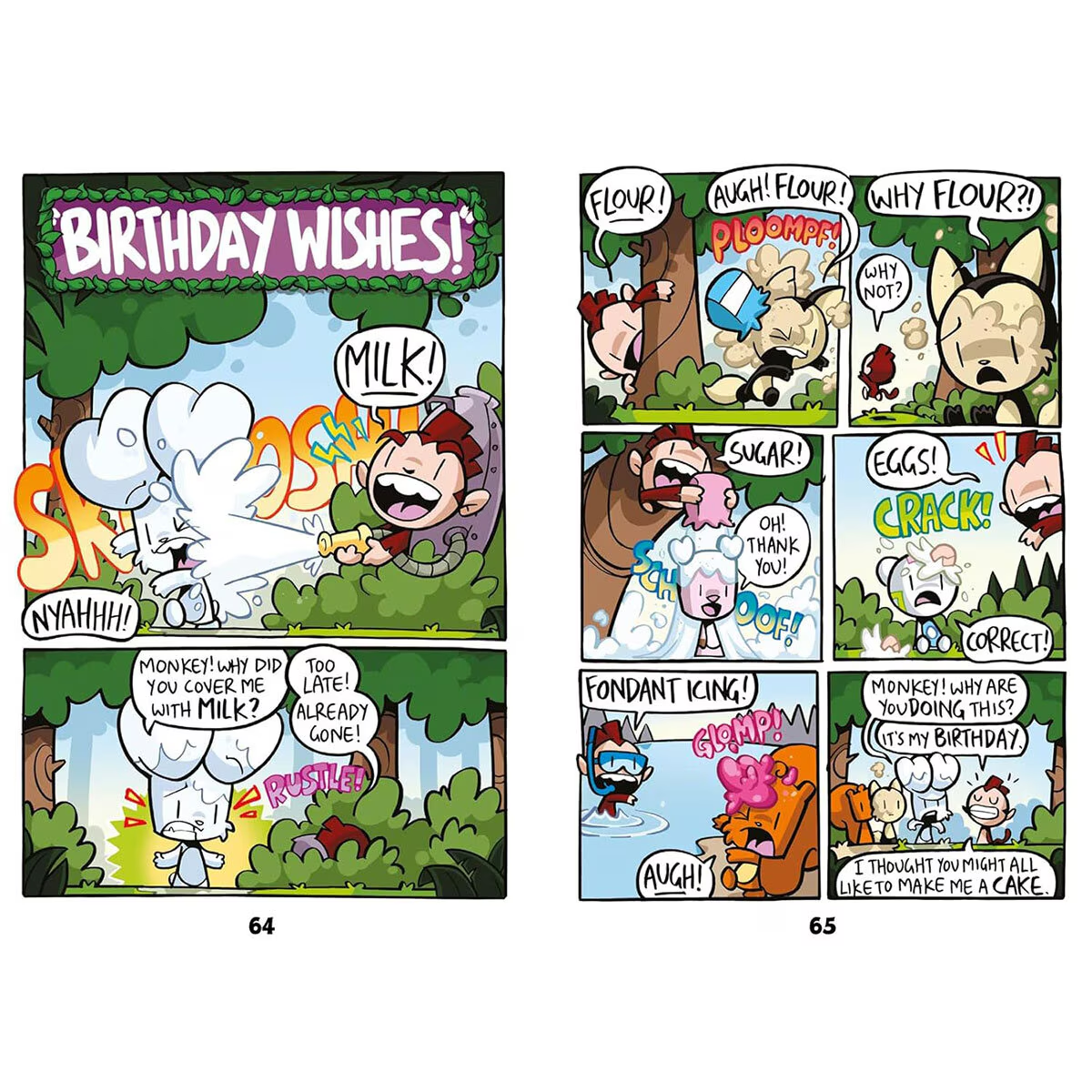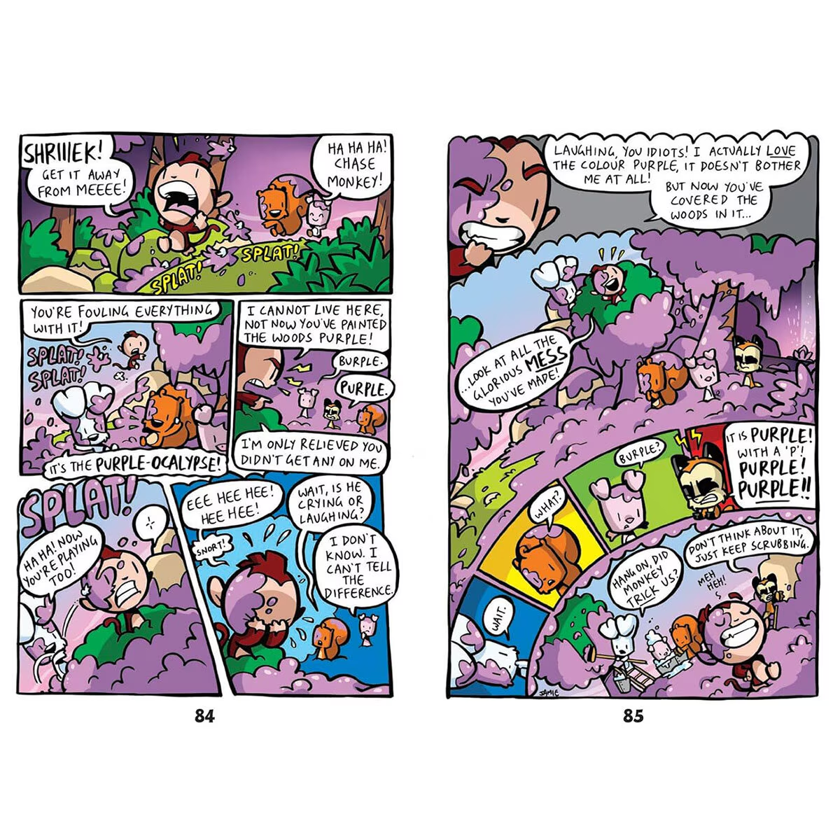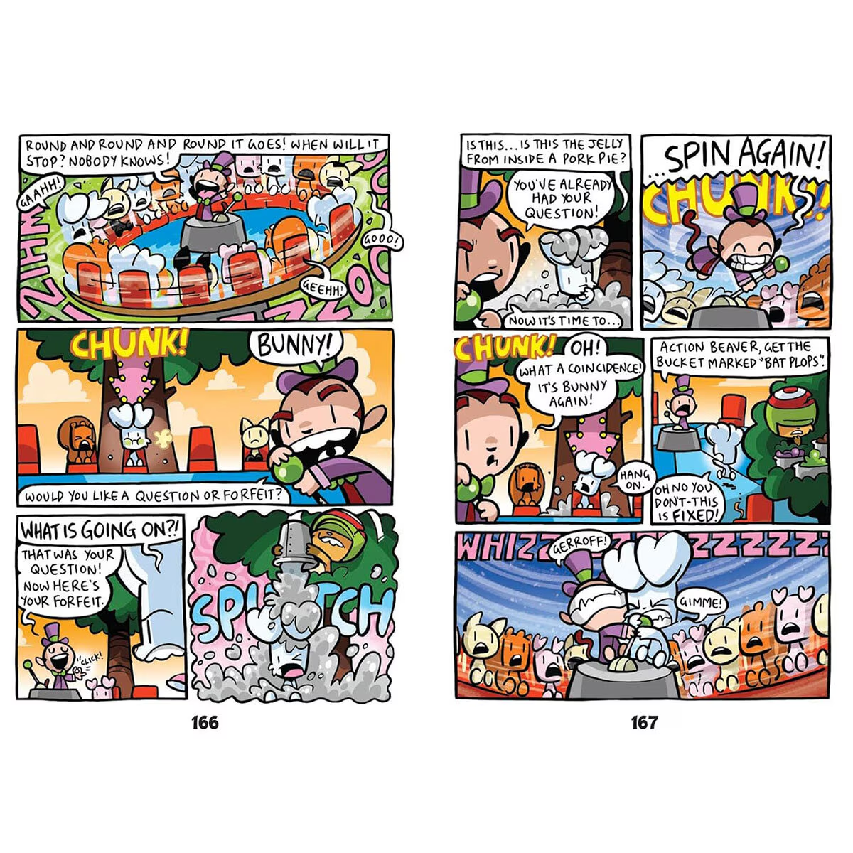 Welcome to the woods. It’s chaos in there! Bunny and his friends Weenie the Squirrel, Pig (the pig), Action Beaver and Skunky the Inventor lived a peaceful life in the forest – until Monkey’s rocket crash-landed and he decided to take over! Now Monkey is causing mayhem, Bunny is determined to put a stop to it, and . . . what’s that? It’s an out-of-control shark tank, ruining a lovely picnic!