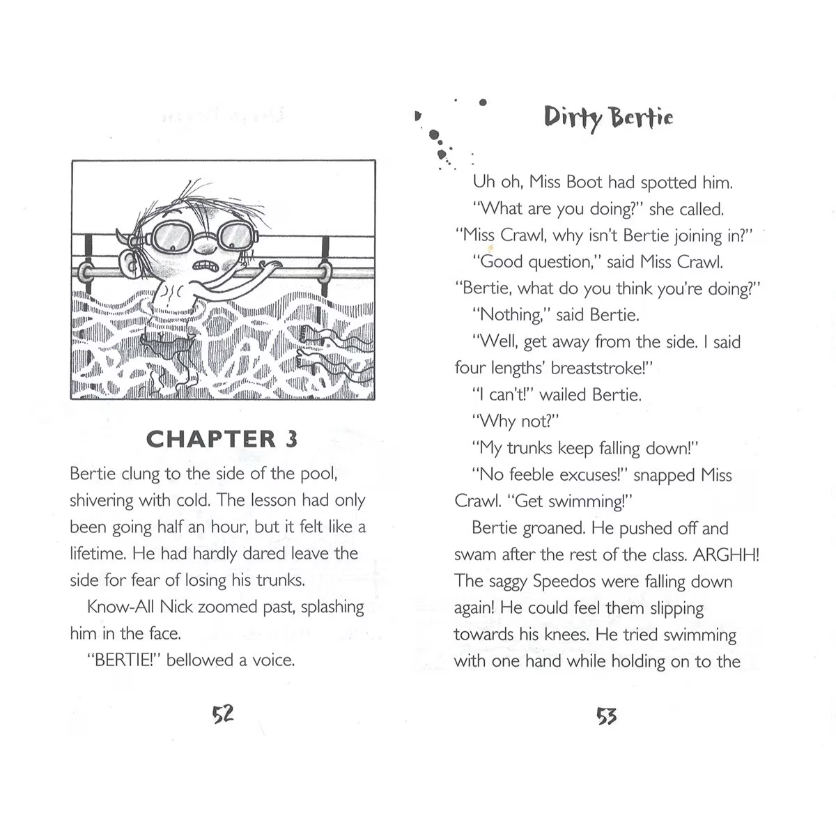 Beware Bertie’s habits could rub off on you! Each book contains 3 wickedly funny stories featuring the worlds grubbiest trouble magnet. Bertie is full to bursting with madcap plans and crazy ideas, and if its TROUBLE you’re after, look no further – Bertie is sure to be up to his neck in it!