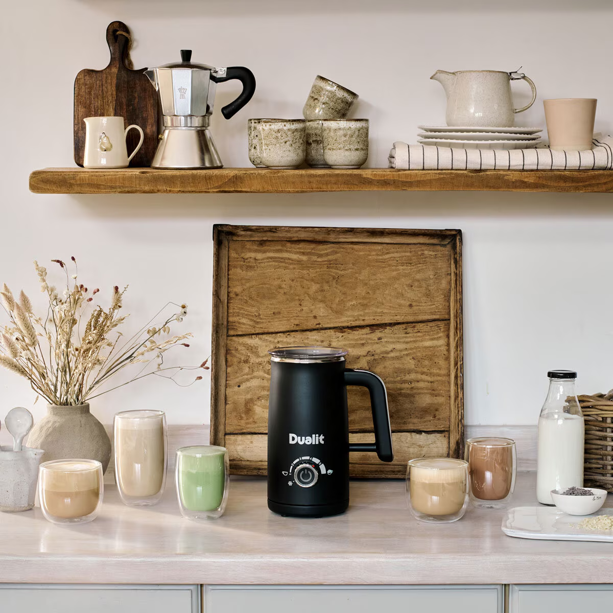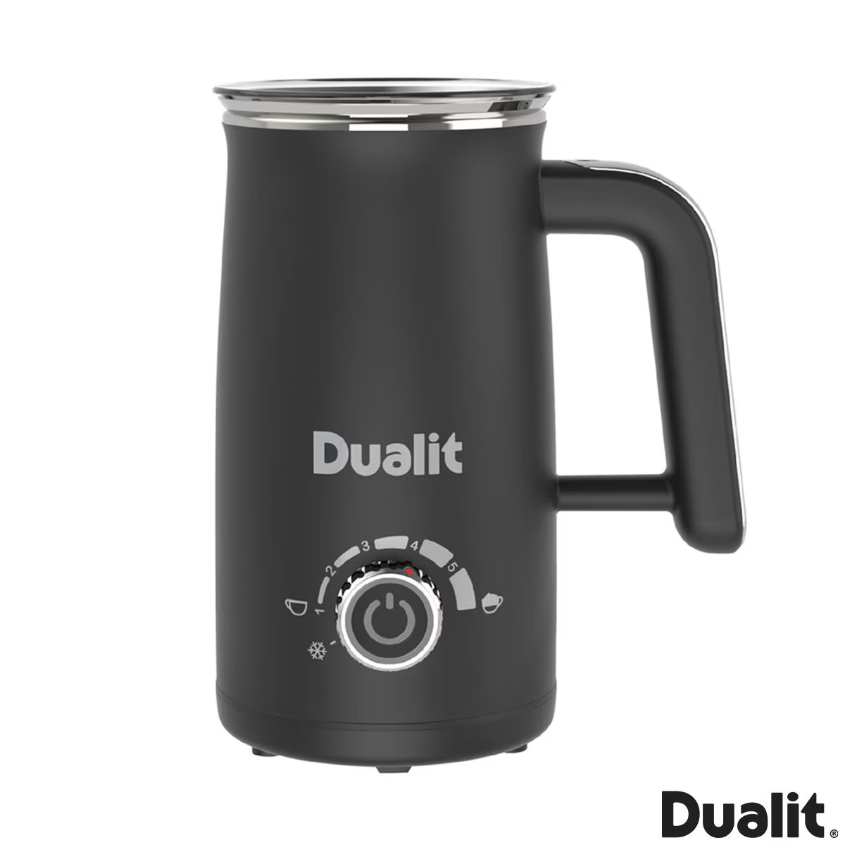 The Dualit Milk Frother Max is the perfect tool for creating barista quality frothed milk at home. With just the touch of a button, it effortlessly froths hot and cold milk, making it ideal for cappuccinos, lattes, hot chocolates, milkshakes, and iced coffees. Enjoy the generous capacity and versatility of Dualit’s Milk Frother Max. Its perfect froth technology gives you full control of your froth. It can make up to five cups or two mugs at a time, ideal for friends and family. Its compact, sleek design makes it a stylish addition to any kitchen, delivering creamy, rich froth in seconds.