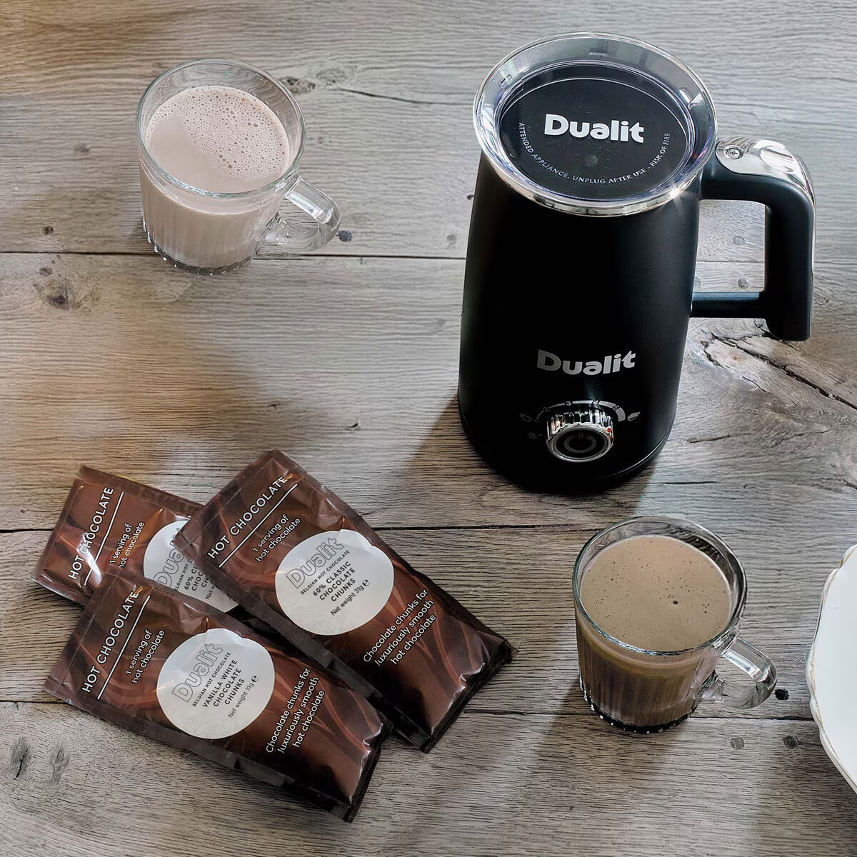 Dualit Milk Frother & Hot Chocolate Maker Max with 4 X Single Serve Belgian Chocolate Sachets , 10140