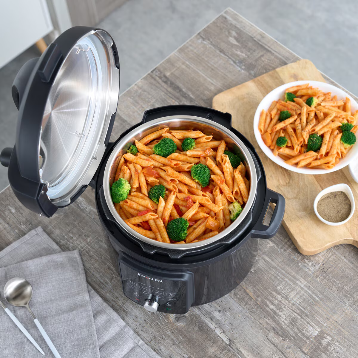Cook fast or cook slow. Perfect porridge in 4 minutes to fool-proof boiled eggs, one pot pastas and soups in 5 minutes to stews slow cooked all day or pressure cooked fast, sous vide steaks and much more. 70% faster compared to traditional cooking methods