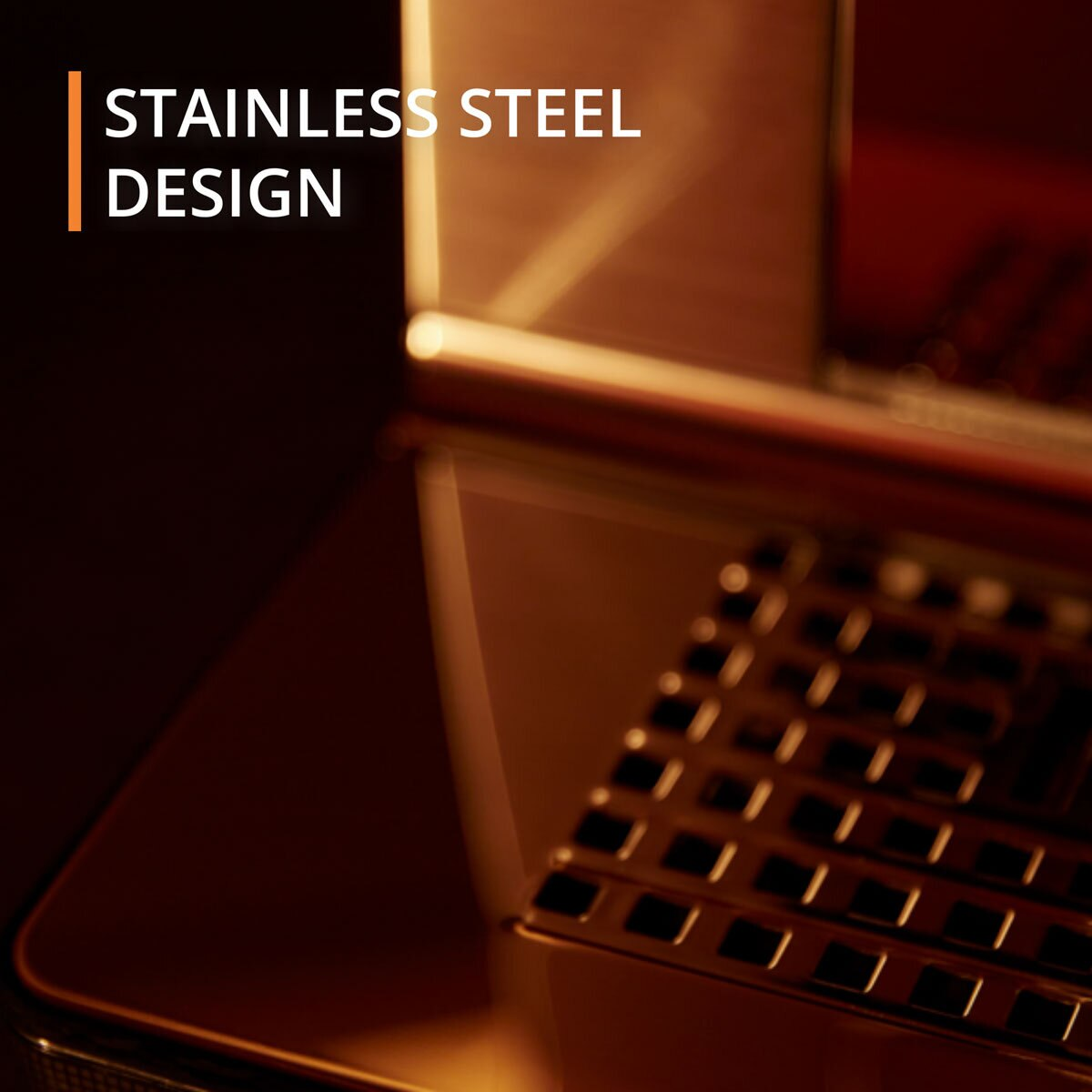 - STAINLESS STEEL DESIGN: An elegant stainless steel coffee machine with a fine brushed finish from the drip tray to the top coffee bean container, for a sleek and stylish aesthetic perfect in any home