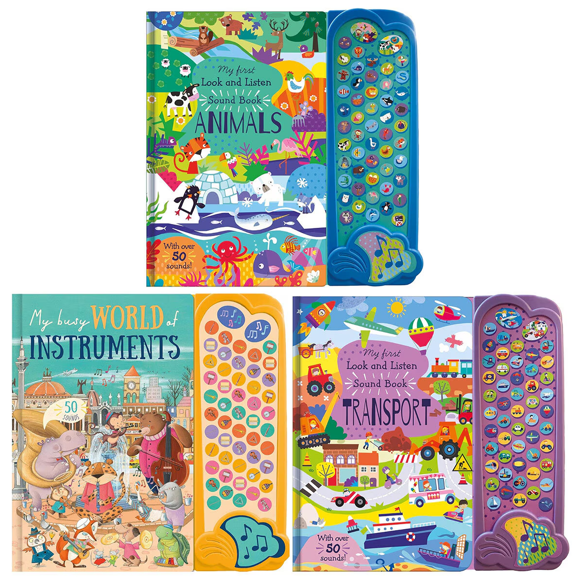 My First 50 Button Sound Books in 3 Options: Animals, Instruments or Transport