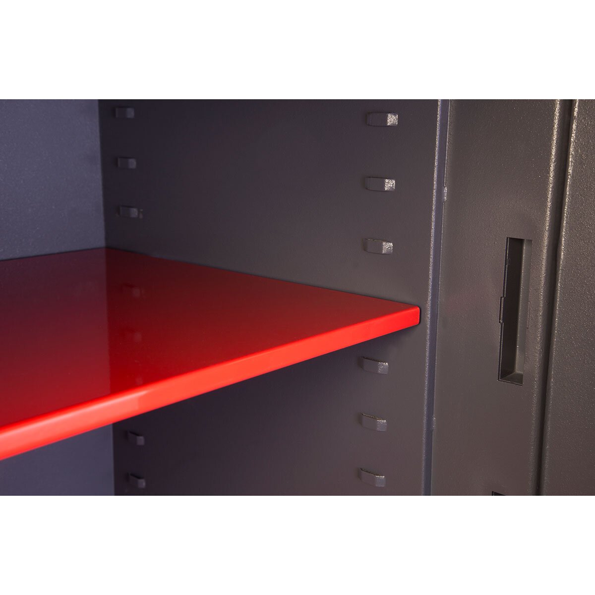 CONSTRUCTION – 3 way 24mm diameter locking bolts, double wall construction with specially formulated concrete infill, anti-drill plates and re-locker protection, provide a safe of great strength.
