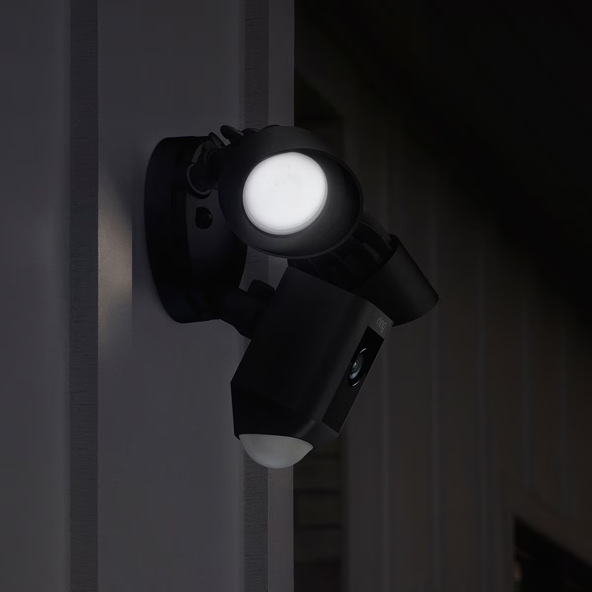 Protect your home with the Ring Floodlight Cam Plus, featuring a HD security camera with built-in floodlights, 2-way talk and a siren alarm.