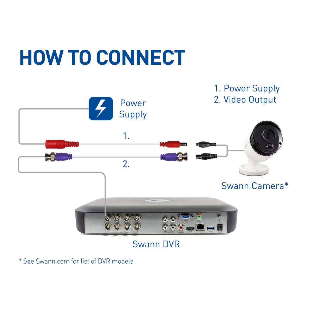 - Swann CCTV Extension Cable 30m/100ft SWPRO- 30ULCBL (Male to Male BNC & Male to Female DC Power Connection)
