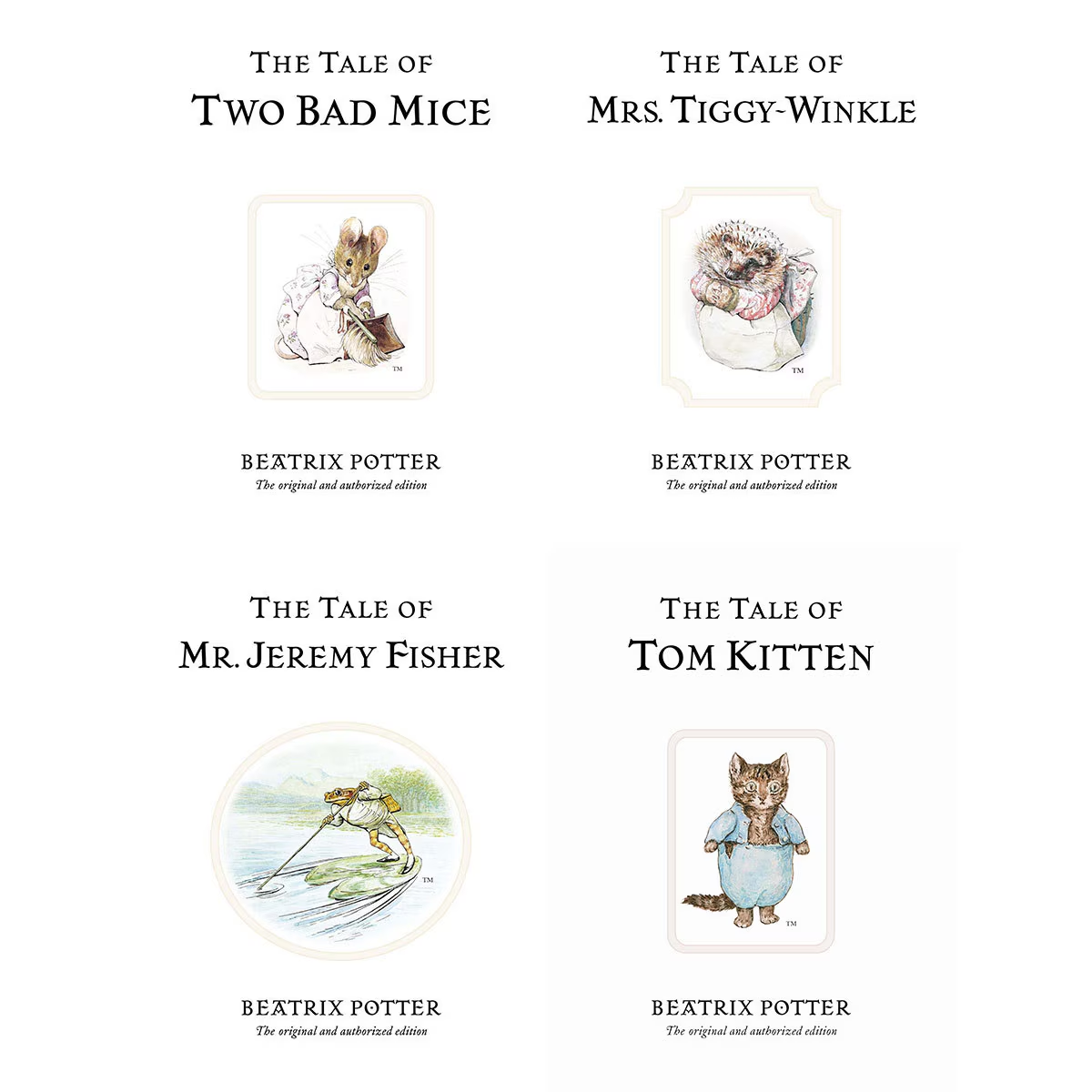 Includes: The Tailor of Gloucester, The Tale of Peter Rabbit, The Tale of Squirrel Nutkin, The Tale of Benjamin Bunny, The Tale of Two Bad Mice, The Tale of Mrs. Tiggy-Twinkle, The Tale of Mr. Jeremy Fisher, The Tale of Tom Kitten, The Tale of Jemima Puddle-Duck, The Tale of The Flopsy Bunnies, The Tale of Mrs. Tittlemouse, The Tale of Timmy Tiptoes, The Tale of Johnny Town-Mouse, The Tale of Mr. Tod, The Tale of Pigling Bland, The Tale of Samuel Whiskers, The Tale of The Pie and The Patty-Pan, The Tale of Ginger and Pickles, The Tale of Little Pig Robinson, The Story of a Fierce Bad Rabbit, The story of Miss Moppet, Appley Dapply’s Nursery Rhymes, Cecily Parsley’s Nursery Rhymes.