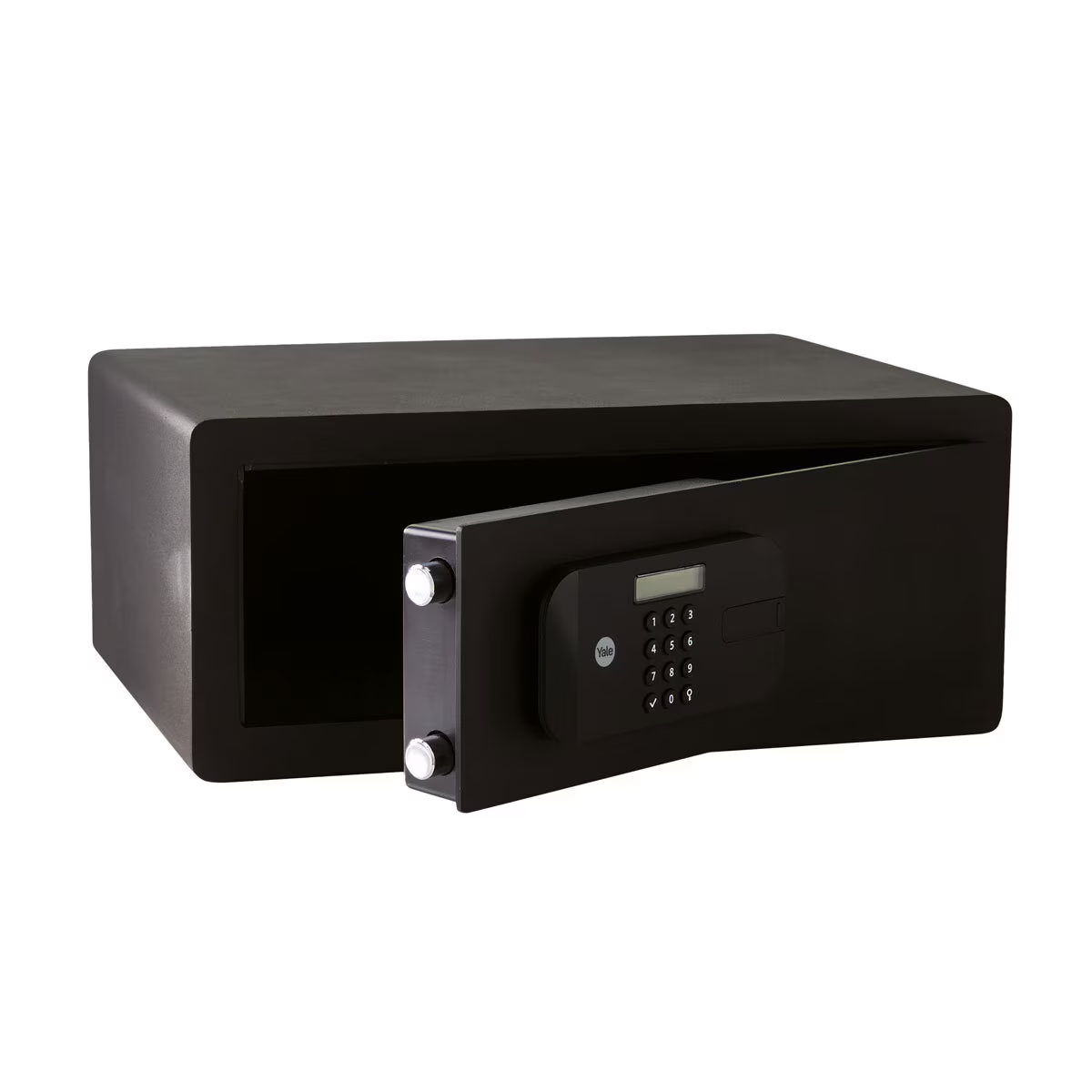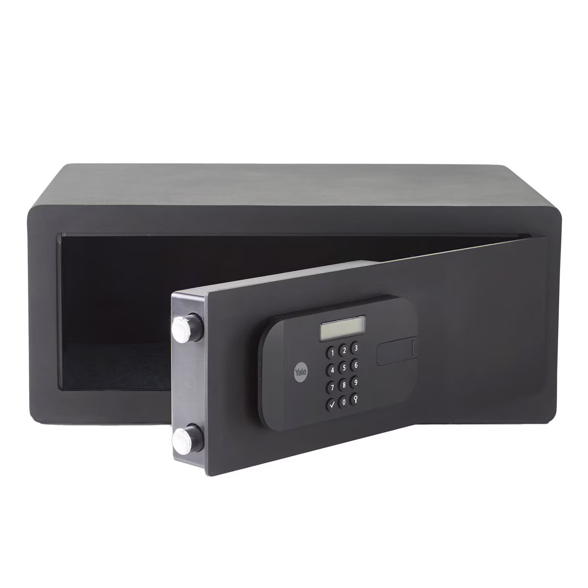 The Yale High Security Laptop Safe features a laser cut door and 20mm, anti-saw locking bolts for optimum protection against attack. There are internal hanging hooks and a light for your convenience.